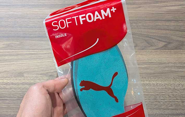 足の形に合わせて沈みこむような、やわらかいクッション性で人気の高い『PUMA(プーマ)』のインソール『SoftFoam+(以下、ソフトフォーム)』。