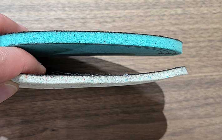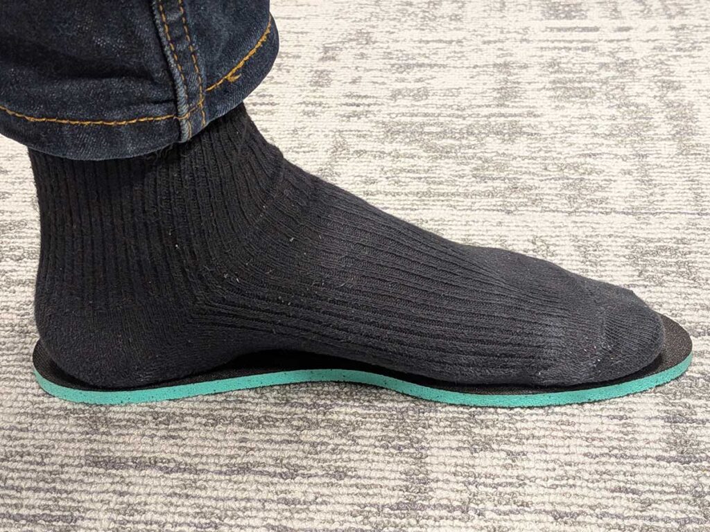 一般的なインソールと比べて2倍ほど厚みがあることが分かります。