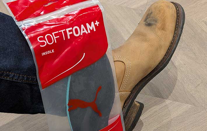 履き心地の悪いブーツにソフトフォームを入れてみると…