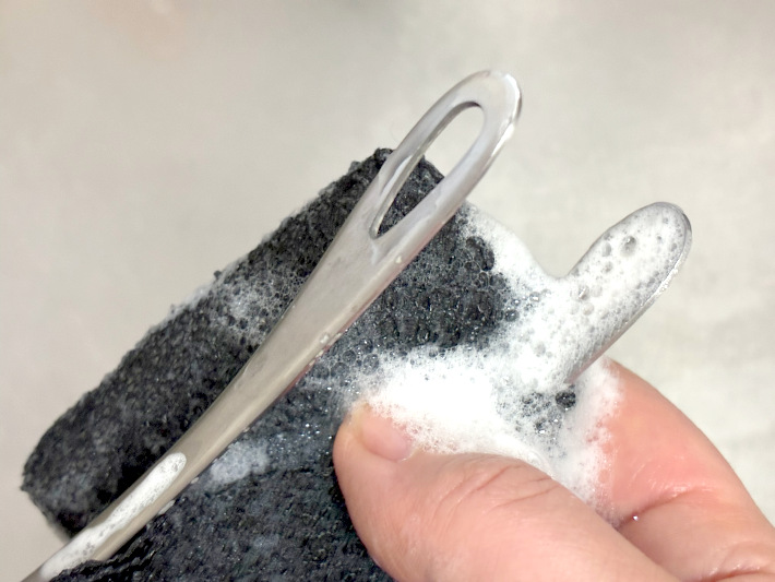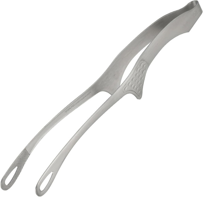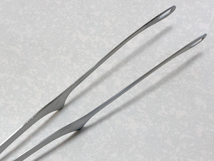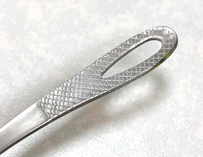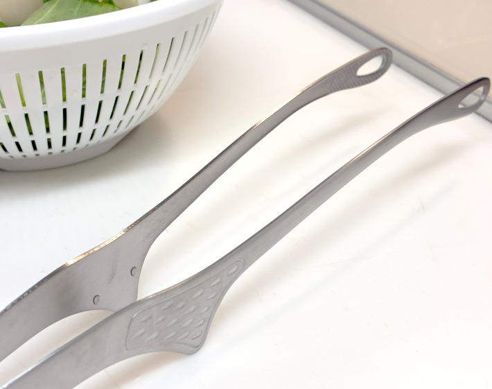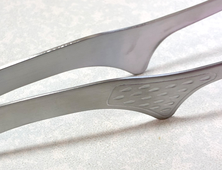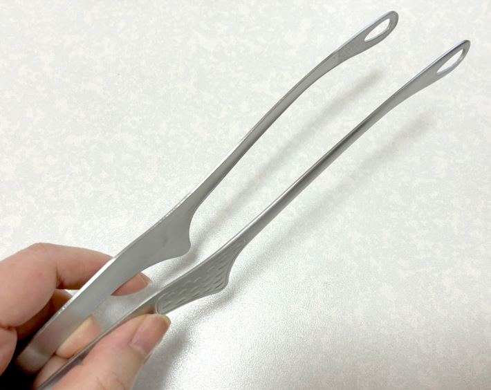 よくあるステンレストングのようなギザギザはなく、形は丸みがあってシンプル。内側には凹凸加工が施され、物をつかんだ時に滑りにくいつくりになっています。
