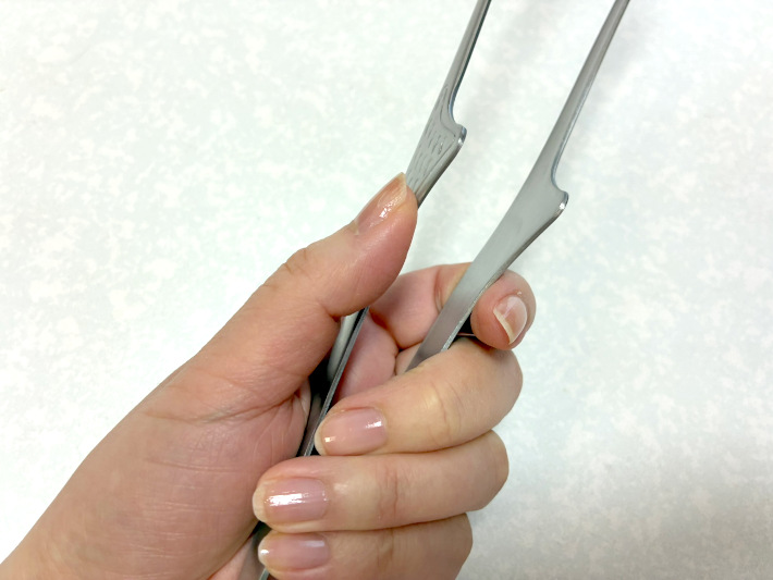 もう1つの大事なポイントは、物がつかみやすいかどうかです。トングの中には固くて開閉しにくいものもあり、先端部分がどんな形状かでつかみやすさも変わってきます。