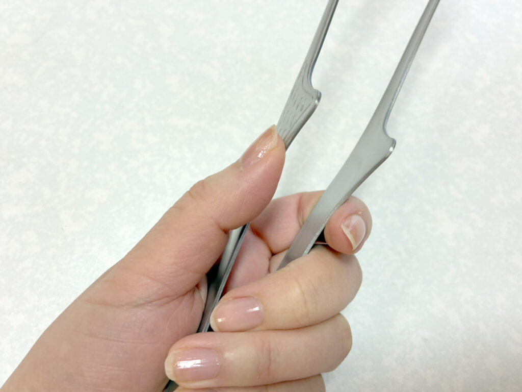 ステンレスの手触りも心地よく、握ると自然にフィットします。細かいものをつかむ時にも作業がしやすそうです。