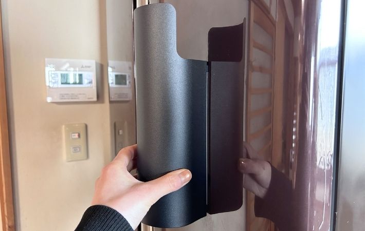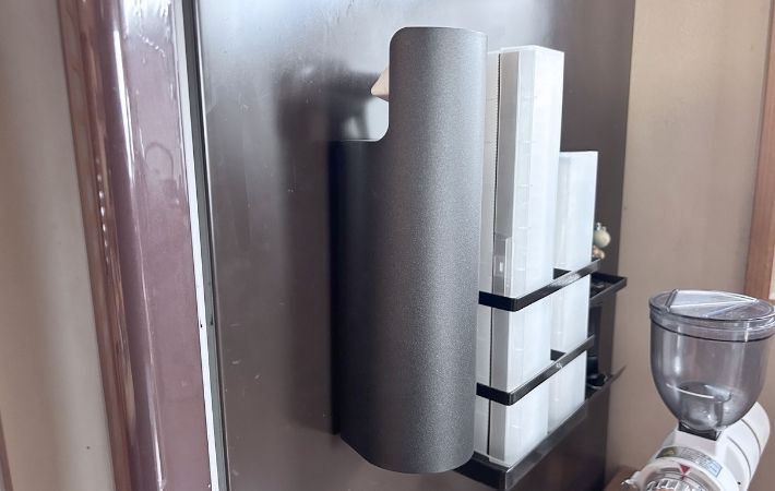 わが家では、キッチンで冷蔵庫の側面にピタッと貼って愛用しています。