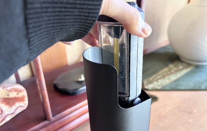 派手なパッケージのスプレーボトルもこのホルダーに入れればOK。正面からは見えないため、空間が一瞬でスタイリッシュな印象に変わります。