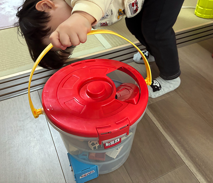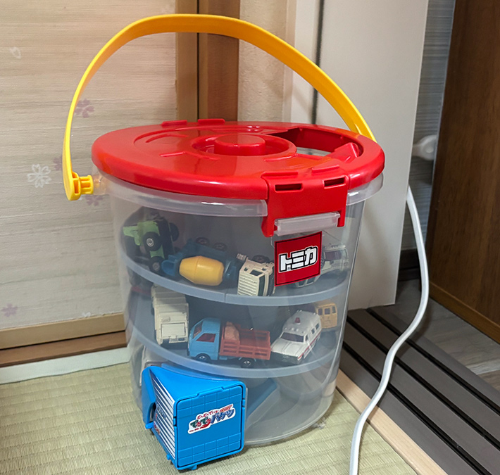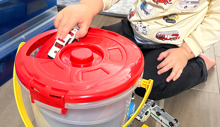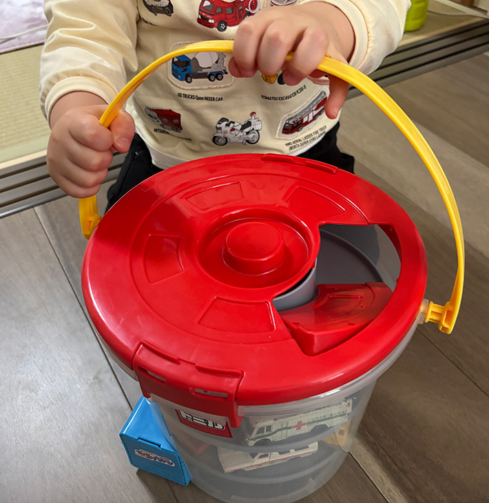 子供が『トミカ』をぶちまけて困っている人は、『でるでるバケツ』に頼ってみてはいかがでしょう!