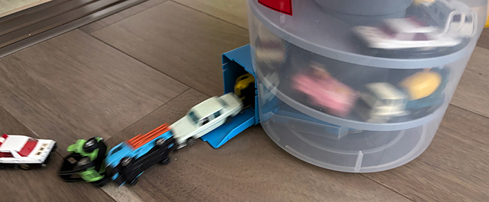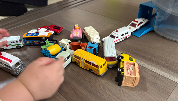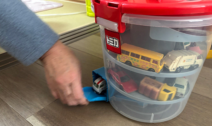 箱からぶちまけたオモチャでフローリングは傷つくし、「救急車の『トミカ』がない!探して」なんて言われた日には、イライラが募ってストレス爆発寸前!