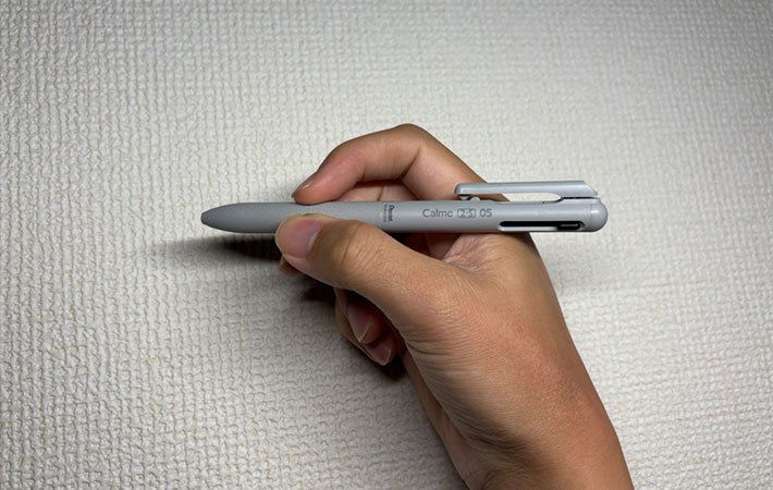 複数の芯を内蔵するため多機能ペンは太くなりがちですが、『Calme 2・S』は単色版よりわずかに太くなった程度。
