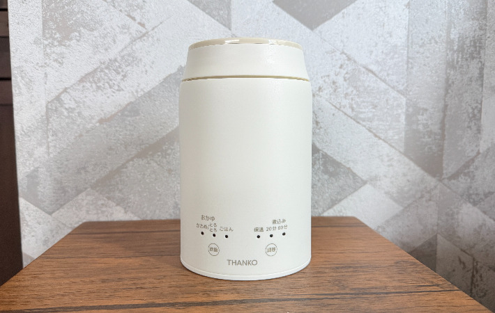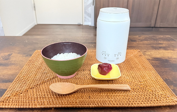 キッチンに立てない日でもOK スイッチひとつで温かいおかゆが食べられる神アイテムがこちら ホーム・キッチン By - 小林ユリ 更新:2026-03-27 ※本記事はUPDATEが独自に制作したコンテンツです。また、本記事を経由して商品の購入が発生した場合に、ECサイト等から送客手数料を受領することがあります。 在宅ワーク中心の筆者は、集中モードに入ると仕事部屋にこもりきりになります。 午前中からオンライン打ち合わせや作業に追われ、気づけば14時、15時。「そういえば今日、まだ何も食べていない…」と慌てる日も珍しくありませんでした。 在宅ワークは区切りがないので、つい食事を後回しにしてしまいがち。でもキッチンに立つ余裕がないほど忙しい時こそ、きちんと食べないと集中力が落ちてしまいます。 そこで使ってみたのが、『THANKO(サンコー)』の『持ち運びできるおかゆクッカー KayuPot』でした。 おかゆを作れる小さな家電 Amazonで見る 楽天市場で見る おかゆは消化がよく、身体にやさしい食べ物。忙しい時や食欲がない時でも食べやすく、負担が少ないのが魅力です。 長時間デスクワークをしていると、「あまり重たいものは食べたくないけど、スープだけだと物足りない」と感じることも。その点、おかゆはちょうどいい存在です。 そんなおかゆを、思い立った時に手軽に作れるのが『KayuPot』。 片手でも持てるくらいのサイズ感でスープジャーのような見た目ですが、実はヒーターが内蔵されていて、加熱調理ができるコンパクト家電です。 ご飯茶碗1杯分のおかゆをスイッチ1つでほったらかし調理できます。 計量も操作もシンプルで分かりやすい 使い方はとにかく簡単。 1.お米と水を入れる 2.フタを閉める 3.スイッチを押す たったこれだけです。 専用の計量カップが付属しているので、分量に迷うこともありません。 おかゆのモードは『かため』と『とろとろ』の2種類。 『かため』なら約25分、『とろとろ』なら約40分で完成します。セットしたら、あとはそのまま放置しておけばOK。 鍋のように吹きこぼれを気にする必要もなく、想像以上に楽でした。 できあがったら「ピーピー」という音で知らせてくれるので、仕事に集中していても気がつきやすいです。 また、炊飯が終わると自動的に2時間の保温モードへと移行。焦って食べる必要がないのも嬉しいポイントです。 デスク横で炊ける手軽さが使いやすい AC給電式なので、コンセントさえあればどこでも使用可能です。 筆者は、午前中に中身をセットして仕事机の横に置いておき、仕事が一段落ついたタイミングでスイッチを入れる使い方が定番になっています。 食欲がない時でも、ふわっと立ちのぼる蒸気を見ると自然と「ちゃんと食べよう」と思えるのが不思議です。 軽くて消化のよいおかゆだからこそ、仕事の合間にも食べやすく、午後の集中力を保ちやすくなりました。 おかゆ以外にも使えるのが便利 『KayuPot』は、おかゆ以外にも使えるのが便利なポイント。 白米を炊ける『ごはん』モードや、『煮込み』モードがあり、スープや簡単な煮込み料理にも対応しています。 少量の調理にちょうどいいサイズなので、忙しい日の1人分の軽食づくりにもぴったりでした。 また、フタには中身がこぼれにくい構造が採用されているため、食材や水を入れた状態で持ち運ぶことも可能。 自宅でセットしてそのまま持ち出し、出先でスイッチを入れて、でき立てを食べるといった使い方もできます。 ポータブル電源があれば、キャンプや車中泊といったシーンでも使えそうです。 コンパクトだからお手入れも楽 蓋部分は分解して手洗い可能です。 内釜は取り外しができませんが、内側にはフッ素加工が施されているので、汚れは落としやすい印象でした。 サイズが小さいぶん、洗う面積も少なく、サッと片づけられるのも助かるポイントです。 「これなら作って食べられる」を叶えてくれる、小さな相棒 使ってみて感じたのは、これは単なる調理家電というよりも、生活リズムを整えるための道具に近いということ。「ちゃんと食べる」という習慣を、無理なく取り戻せる感覚がありました。 おかゆ専用というニッチなアイテムではありますが、忙しい日でも食事をおろそかにしたくない人はきっと重宝するでしょう。 風邪をひいてしまった時も、これなら手軽に温かいおかゆを作って食べられそうです。 家に1つあると何かと便利な『KayuPot』、気になった人はぜひチェックしてみてくださいね。 AmazonでTHANKO『持ち運びできるおかゆクッカー KayuPot』を見る 楽天市場でTHANKO『持ち運びできるおかゆクッカー KayuPot』を見る [文・構成/UPDATE編集部] 出典 Amazon/楽天市場 関連ワード キッチン用品家電検証 この記事をシェアする Share Post LINE