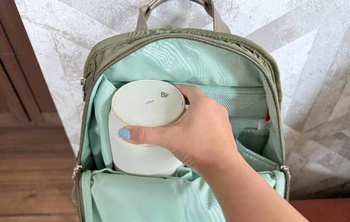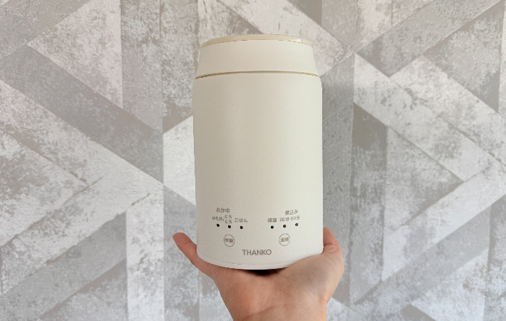 片手でも持てるくらいのサイズ感でスープジャーのような見た目ですが、実はヒーターが内蔵されていて、加熱調理ができるコンパクト家電です。