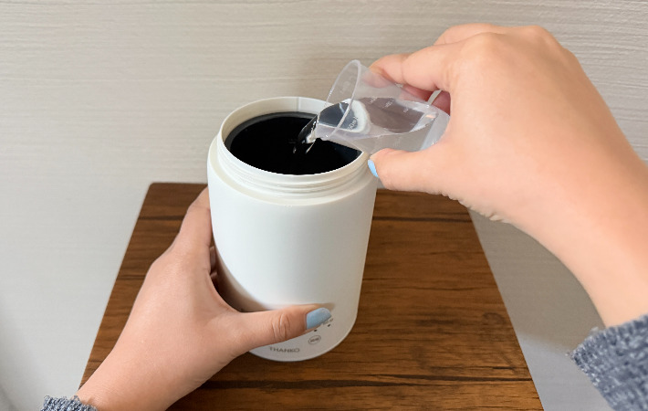 専用の計量カップが付属しているので、分量に迷うこともありません。