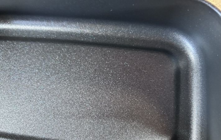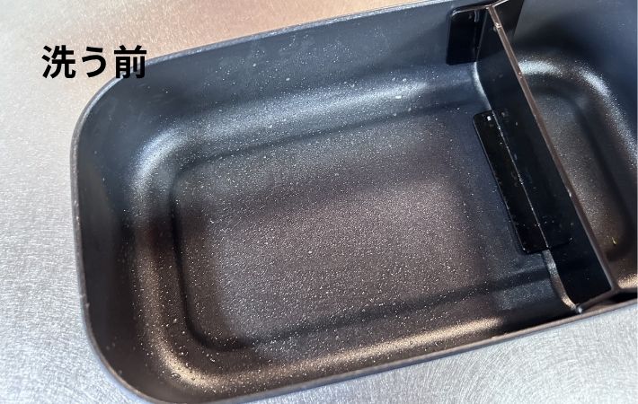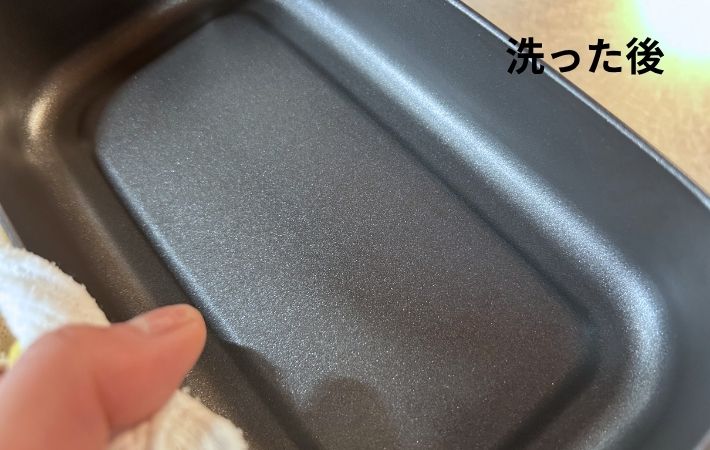 油汚れは内側のふっ素コーティングのおかげで、スポンジで軽くなでるだけ、一度洗いでヌルつきが消えました。
