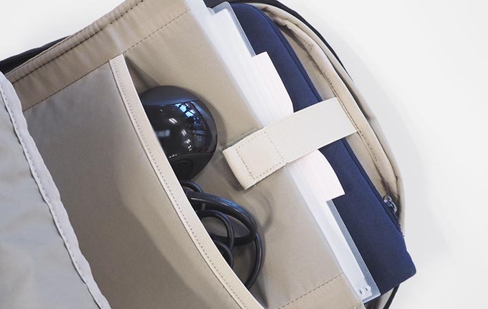 確かにメイン収納では、スリーブやポケット以外の箇所にたくさん物を入れるとややごちゃつきます。