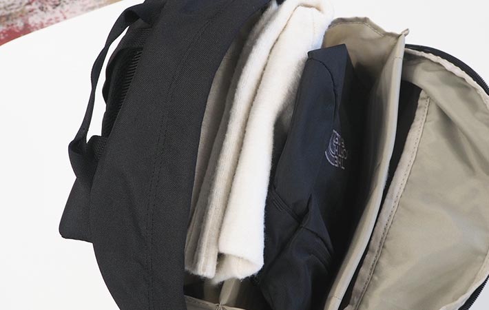 旅行では、蛇腹式スリーブにサブバッグや、さっと取り出したい羽織りなどを収納してもいいでしょう。