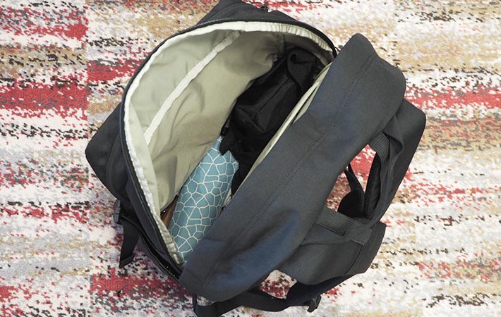 ノートPCや書類、お弁当などを毎日持ち歩けて、さらに荷物が増えた時にも対応できる収納力があるリュック。