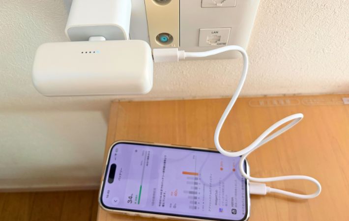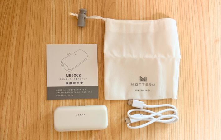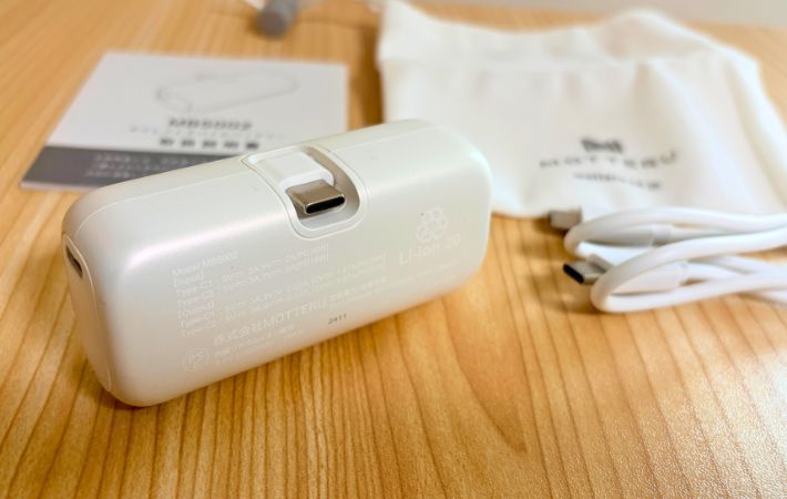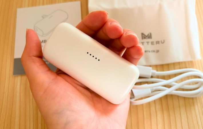常にバッグに入れておくのにぴったり!軽くて頼れる安心モバイルバッテリー ガジェット By - endang 更新:2026-04-04 ※本記事はUPDATEが独自に制作したコンテンツです。また、本記事を経由して商品の購入が発生した場合に、ECサイト等から送客手数料を受領することがあります。 外出先で、「あ、スマホの充電やばいかも」とヒヤッとしたこと、ありませんか。 もしものために、筆者もモバイルバッテリーは持っていますが、重かったり、ケーブルがごちゃついたりするのが嫌で、必要そうな時だけ持ち歩いていました。 でも不思議なことに、持っていない時に限って充電がピンチに。 「常に持っていてもストレスを感じないものないかな」と思っていた時に出会ったのが、『MOTTERU(モッテル)』の『ダイレクトモバイルバッテリー』でした。 目次 1. 『MOTTERU(モッテル)』5000mAh ダイレクトモバイルバッテリー2. ケーブルいらずでサッと充電3. バッグに入れっぱなしでも気にならない4. 本体を充電しながらスマホも充電できる5. 急速充電できる?実際に試してみた6. 実際に使って感じた注意点7. 「とりあえず」にちょうどいいモバイルバッテリー 『MOTTERU(モッテル)』5000mAh ダイレクトモバイルバッテリー MOTTERU(モッテル)ダイレクトモバイルバッテリー スペック ・サイズ(約):幅8cm×高さ3.6cm×奥行き2.6cm ・重さ(約):99g ・容量:5,000mAh Amazonで見る 楽天市場で見る まず感じたのは、とにかく荷物にならないこと。 手のひらにすっぽり収まるサイズで、重さも約99gとかなり軽めです。 さらに、ケーブルを使わずにそのままスマホに挿せるので、持ち物が増えないのもポイントです。 AppleやAndroidのスマホはもちろん、iPadなどのUSB-C対応デバイスにも使えるので、これ1台あれば幅広く対応できます。 また、約50cmの『USB-C to USB-C』ケーブルや取扱説明書兼保証書、専用ポーチが付属しているのも嬉しいところ。 シリーズ累計販売数60万個以上という実績もあり、人気の高さもうかがえます。 ケーブルいらずでサッと充電 このモバイルバッテリーの一番の魅力は、やはりケーブルがいらないこと。 使いたい時に、そのままスマホに挿すだけで充電が始まるので、「ケーブルどこいった?」と探したり、ケーブルが絡まってしまったりといった手間がありません。 この手軽さが想像以上にラクで、充電のハードルがぐっと下がりました。 さらに、コンパクトで軽いので、つけたままスマホを操作しても負担を感じにくいのもポイント。 片手で持っても重さが気にならず、SNSを見たり、ちょっとした調べものをしたりと、普段通りに使えます。 ケーブルがぶら下がらないため、見た目もスッキリしていて、外出先でもストレスなく使えるのが印象的でした。 バッグに入れっぱなしでも気にならない 実際に使い始めてからは、ほぼ毎日バッグに入れっぱなし。 もともと荷物はできるだけ少なくしたいタイプで、必要最低限しか持ち歩かないのですが、これは自然と持ち歩くようになりました。 軽くてかさばらないので存在を忘れるくらいなのに、「いざという時はちゃんと使える」という安心感があります。 コネクタは折りたたみ式なので、持ち運びの際に何かにぶつけたり、引っかかったりする心配もありません。 「使うかわからないけど持っておく」ことが苦じゃないので、日常的に持ち歩くようになりました。 本体を充電しながらスマホも充電できる 地味に便利だったのが、パススルー充電。 モバイルバッテリー本体を充電しながら、同時にスマホも充電できます。 コンセントが1つしかない場面でも、これ1台あればOK。 旅行先やカフェでも、充電の順番待ちをしなくていいのが助かります。 また、スマホ2台の同時充電や、スマホとイヤホンの同時充電も可能。 複数のデバイスをまとめて充電できるので、外出先でも効率よく使えるのが便利だと感じています。 急速充電できる?実際に試してみた 『PD20W』対応とのことで、実際に試してみました。 バッテリー残量が約2%のスマホに、フル充電の『ダイレクトモバイルバッテリー』を接続して充電時間を調べてみました。 iPhoneの表示では、約58分で80%まで回復と表示され、接続直後からどんどんパーセンテージが上がっていきます。 その間にお風呂に入って戻ってみると、約90%まで充電されていました。 短時間でもしっかり充電できていて、急いでいる時にも頼れるスピード感。 外出前のちょっとした時間や、移動中の充電でも活躍してくれそうだと感じました。 実際に使って感じた注意点 コンパクトさと引き換えに、容量は5,000mAh。 スマホのフル充電1回分には少し足りない場面もあります。 そのため、「これ1台で1日安心」というよりは、あくまでもピンチを乗り切るためのアイテムだと思いました。 ただ、電池残量がひと目でわかるLED表示がついているので、「後どれくらい使えるか」が分かりやすいのは安心できるポイント。 充電のタイミングも判断しやすく、持ち歩き用としては使い勝手の