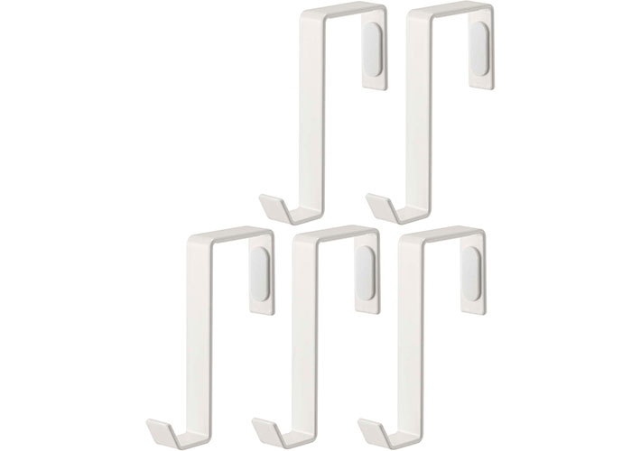 ・衣装ボックスのドア掛け用のフックとして購入。ドアの内側に向けて掛けハンガーで服を吊ると、閉めた際見えずに収納でき、よく使うものはドアの外側に向けて掛けることができるなど、便利です。