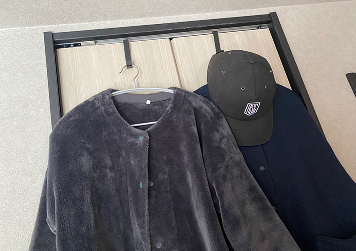 肌寒い時にさっと羽織りを手に取ったり、外出前にキャップやハンガーをちょい掛けしたり…。