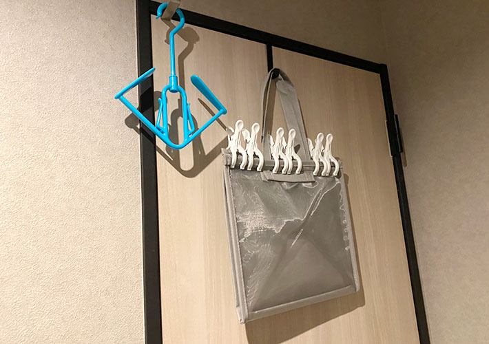 ・「運ぶの面倒くさいな…」と思う時にドアなどに掛けておくと便利!ズボラにもおすすめ、片づけも楽。