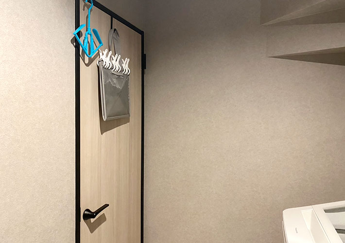 デザインも無駄のないミニマルなルックスなので、ドアに取りつけたままでも部屋の雰囲気を邪魔しません。