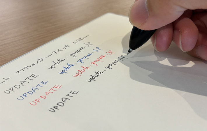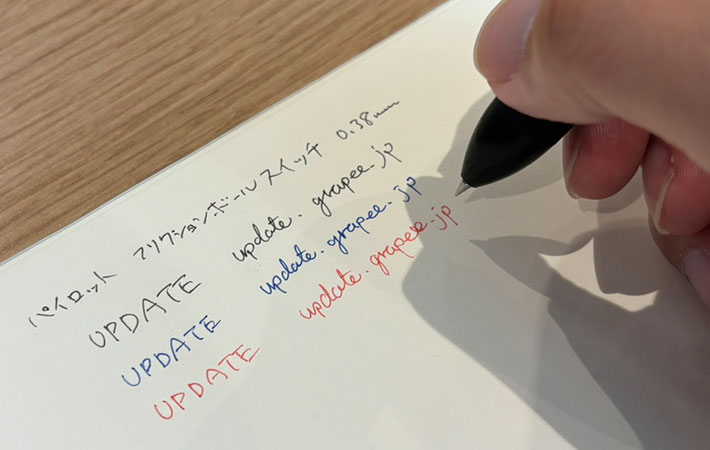 インクの色味は程よい濃さで、黒・赤・青ともに視認性は問題なし。書き間違えてしまったら、付属のラバーパーツでこすりましょう。