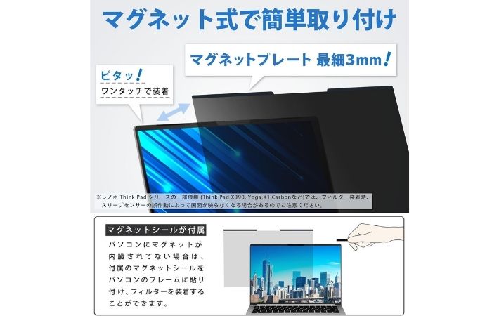 そんな願いをスマートに叶えてくれるのが、『PCフィルター専門工房』の『マグネット式プライバシーフィルター』です。