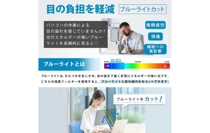 情報を守りながらブルーライトはカットする!この両立が働く大人にとっては心強いですよね。