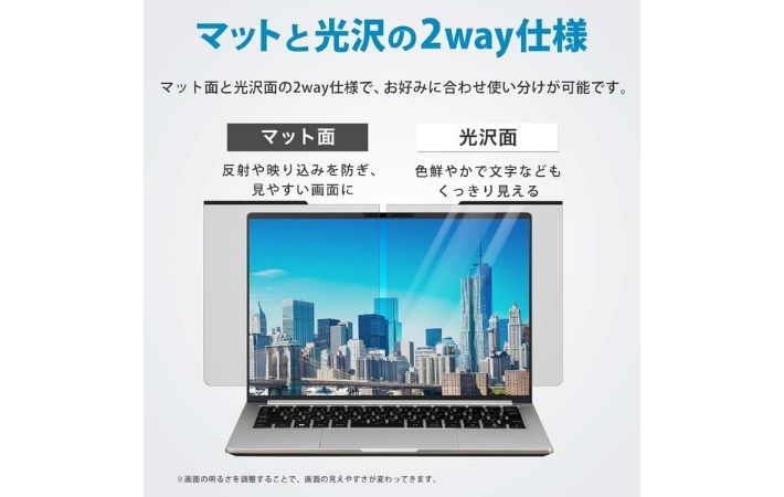片面には『反射防止(アンチグレア)機能』を搭載しており、太陽光や蛍光灯からの反射を抑えてくれます。