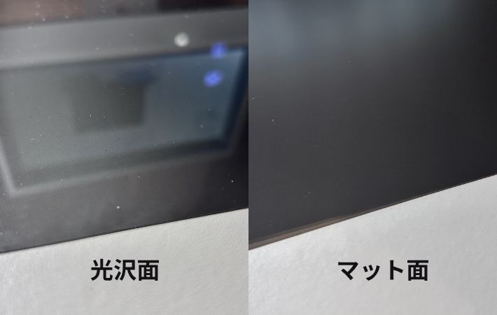 ・光沢面:コントラストがはっきりするため、画像や動画を鮮やかにくっきり楽しみたい時に。