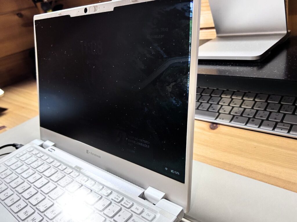 正面から角度を少しずらした程度では、画面は真っ黒で見えませんが、角度によっては画面の内容がうっすらと見えてしまう瞬間があります。