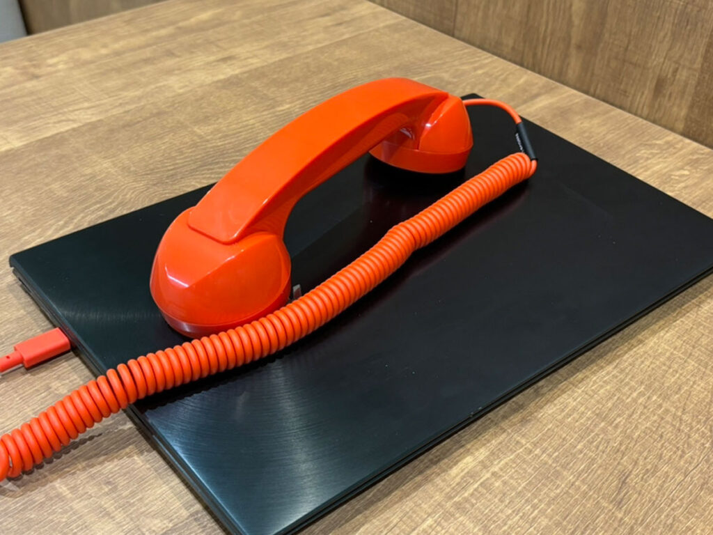 そんな『POP Phone』のコードの先にはUSB-C端子がついていて、パソコンやスマホに接続すると、受話器で通話できるという仕組みです。