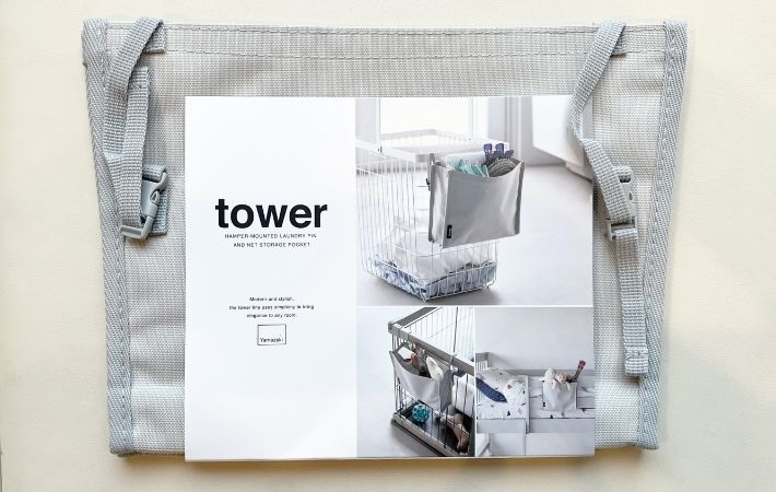 こちらの『洗濯カゴに取り付けるピンチ&ネット収納ポケット』も、かゆいところに手が届く、タワーらしさ全開のアイテムです。