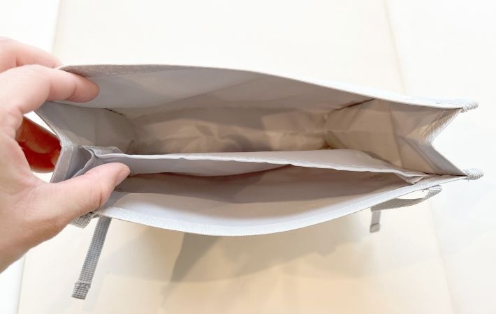 内部には仕切りがついているので、収納スペースを分けて使うことも可能。