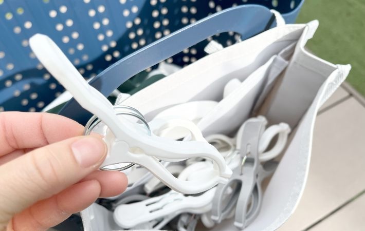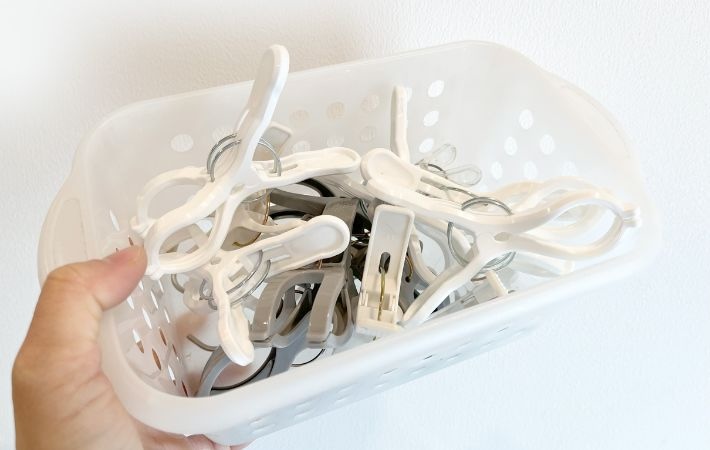 これまでは、洗濯バサミをプラスチックケースに入れてクローゼットに収納し、洗濯のたびに出し入れを繰り返していた筆者。