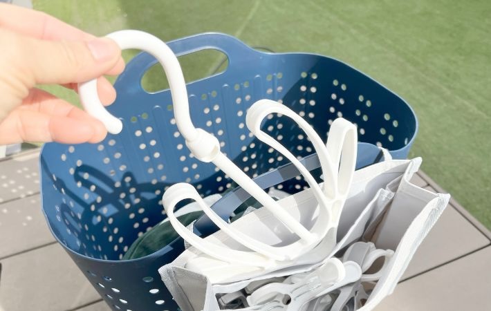しかし『洗濯カゴに取り付けるピンチ&ネット収納ポケット』を使い始めてからは、その手間がまるごと不要に…!