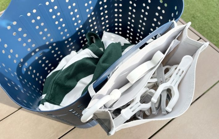 中には洗濯バサミやネットなど、干す時に使う小物をまとめて入れられます。
