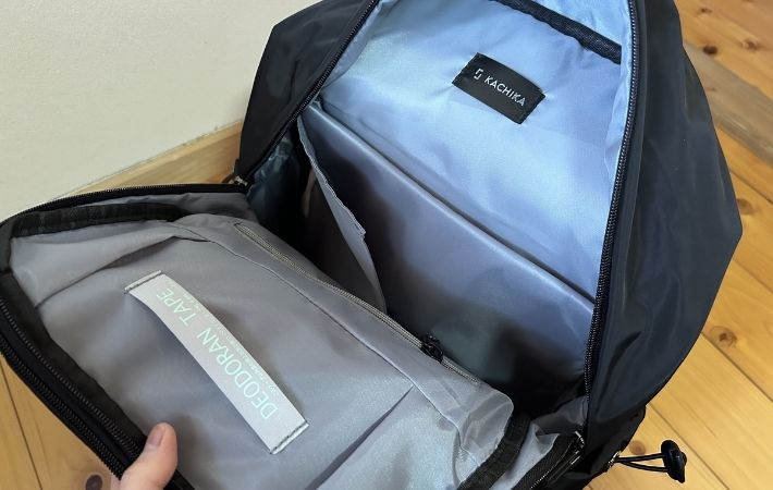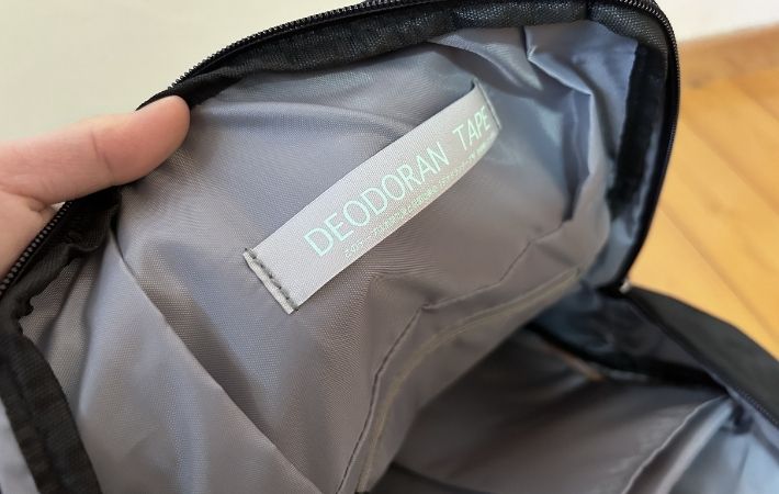 メインコンパートメントの内側に、デオドラントテープが採用されており、気になるニオイを元から分解してくれる仕組みになっています。