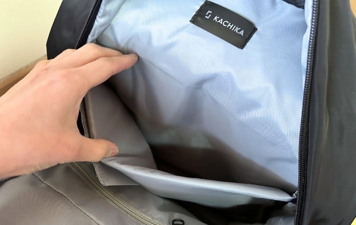 メインコンパートメントとは別にフロントにも大きな収納スペースがついていて、しっかり奥行きがあります。