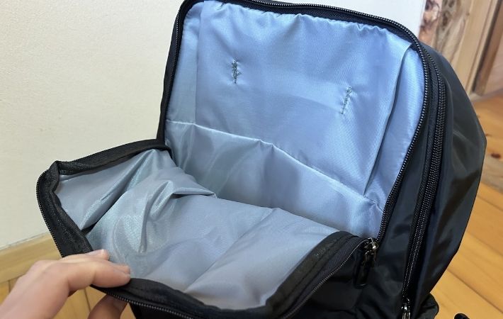 また、内側のポケットは1か所しかありません。もっと細かく荷物を分けたいという場合はポーチなどを併用するのがよさそうです。