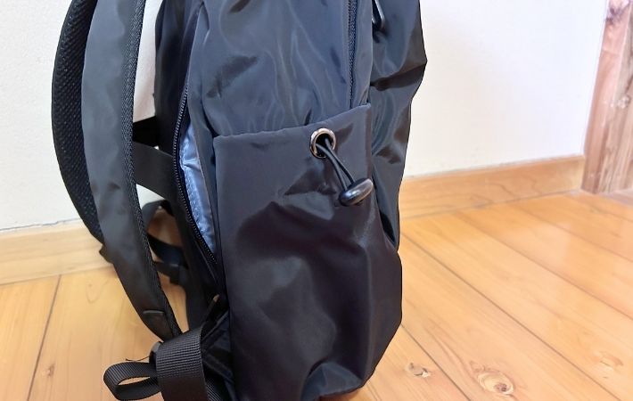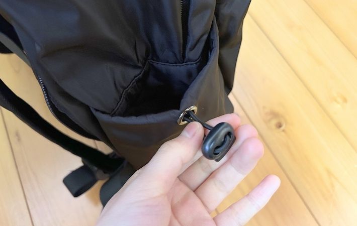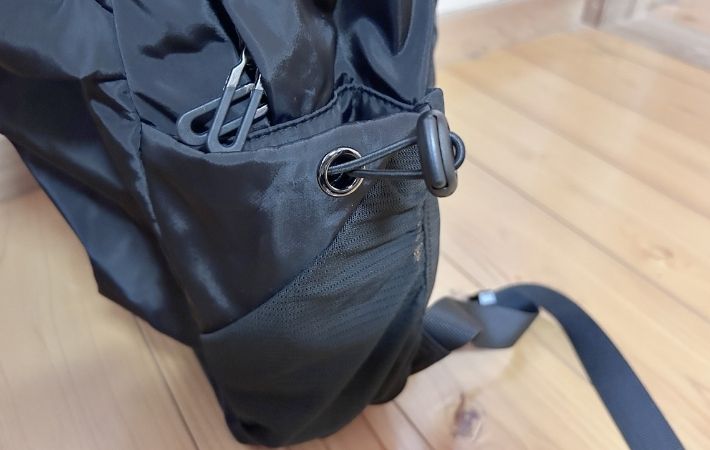 さらに注目したいのが、両サイドについているコードで調整するタイプのオープンポケットです。