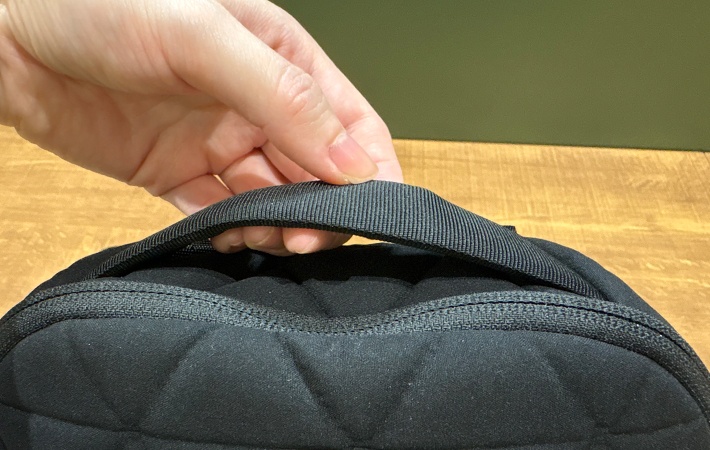 ほかのリュックだと薄手のバンドが多いイメージですが、適度に厚みがあって持ちやすいところもポイントが高いです。