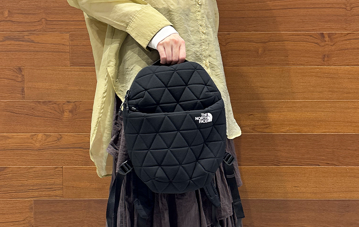 立体感のあるキルティングのようなデザインが「おしゃれでかわいい」と人気の、ノースフェイスの『Geoface(ジオフェイス)』シリーズ。