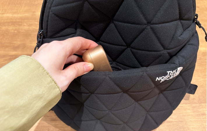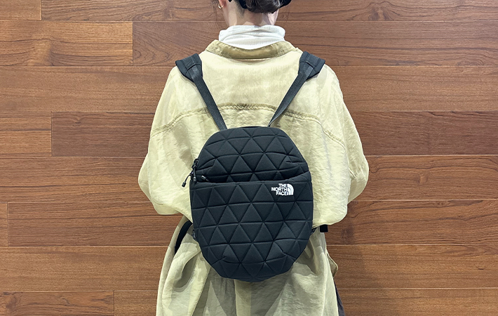 「こんなリュックを求めてた!」 ノースフェイスの『ジオフェイス ミニパック』が、かわいいのに超優秀で手放せない ファッション By - ゆかコーラ 更新:2026-04-03 ※本記事はUPDATEが独自に制作したコンテンツです。また、本記事を経由して商品の購入が発生した場合に、ECサイト等から送客手数料を受領することがあります。 毎日の通勤では、リュックを愛用している筆者。 荷物をまとめて収納できて便利ですが、普段使いするには大きすぎるため、プライベートでは出番がありませんでした。 かといって、小さめのショルダーバッグやハンドバッグだと、入るものが限られるし動きづらくなるのが地味にストレス…。 そんな筆者にぴったりな、ミニリュックを見つけました。 それが、『ザ・ノース・フェイス(以下、ノースフェイス)』の『Geoface Mini Pack(ジオフェイス ミニパック)』です! Amazonで見る 楽天市場で見る 立体感のあるキルティングのようなデザインが「おしゃれでかわいい」と人気の、ノースフェイスの『Geoface(ジオフェイス)』シリーズ。 バッグからポーチ、PCスリーブなどさまざまな商品を展開しており、筆者が見つけた『ジオフェイス ミニパック』も、同じシリーズです。 実際に使ってみると、手放せない存在になってしまったので使用感をご紹介します! ノースフェイスの『ジオフェイス ミニパック』を使ったら手放せなくなった! まず筆者が気に入ったのが、コロンと丸みを帯びたかわいらしいデザイン。 モコモコとしたキルティングのデザインが施されていて、シンプルながら適度に存在感があります。 遠くからだと目立ちませんが、近づくと分かるくらいのさり気ないデザインが、筆者に刺さりました! 表面はサラッとした質感で、ポコポコとした触り心地。 前面のワンポイントロゴが控えめながらアクセントになっていて、スタイリッシュに見せてくれます。 実際に背負ってみると、こんな感じ。 身長155cmの筆者にとっては、大きすぎず小さすぎないサイズでした。 黒リュックはスポーティーに見えすぎてしまうイメージがあったのですが、丸いフォルムとキルティングのデザインが、コーディネートのポイントになってくれます。 存在感がありながら、どんな服装にも馴染んでくれるので、旅行やおでかけにもぴったりでしょう。 上部には持ち手がついていて、手提げで持ち歩くことも可能。 ほかのリュックだと薄手のバンドが多いイメージですが、適度に厚みがあって持ちやすいところもポイントが高いです。 デザインだけではなく、こうした細かい部分の機能性が考えられているところも、さすがノースフェイスですよね! 日常使いにちょうどいいサイズ感 『ジオフェイス ミニパック』のサイズは、以下の通り。 サイズ:幅27.5cm×高さ28cm×マチ11cm 重量:240g 容量:6L メインコンパートメントのメッシュポケットは、ハンカチやパスケースなど中で散らかりやすいものを入れるのに便利です。 フロント部分のポケットにはファスナーがついており、スマホやイヤホンなどサッと取り出したいものを収納できますよ。 早速、筆者がお出かけ時に持ち歩くものを中に入れてみました。 財布やスマホ、ポーチはもちろん、500mLのペットボトルや折りたたみ傘も、この通りスッキリと収まります! 一見コンパクトに見えますが、マチがしっかりあるので『意外と入る』という印象です。 テーマパークに出かける時や、普段から荷物が多い人には物足りなく感じるかもしれませんが、筆者には十分な容量でした。 小さなショルダーバッグやハンドバッグを使う時には、入りきらないものを無理やりコートのポケットに突っ込んでいた筆者…。 これからは、バタつく外出時に持ち物の選別で悩むこともなくなりそうです! 『ジオフェイス ミニパック』の気になる点 『ジオフェイス ミニパック』の気になる点として、口コミでも多数挙げられているのが、パッド入りショルダーハーネスが動いてしまうこと。 ひもの長さに合わせて上下に動かし、肩にフィットさせることができる仕様ですが、中に入れる荷物や服装によってはズレてしまうことがあるようです。 重さによっては動きやすくなってしまう可能性もあるため、気になるようであれば重い物を入れすぎないようにするといいかもしれません。 必要最低限の貴重品程度であれば、筆者は特に気になりませんでしたよ。 『ジオフェイス ミニパック』のまとめ ノースフェイス『ジオフェイス ミニパック』は、デザイン性と使いやすさを兼ね備えた、まさに『いいとこどり』のミニリュックでした。 普段使いはもちろん、できるだけ身軽になりたい旅行時のサブバッグとしてもおすすめ。 「こんなに便利なら、もっと早く買えばよかったな~」と、筆者は少し後悔したほどです。 日常使いできるコンパクトなリュックを探している人や、身軽におでかけを楽しみたい人にぴったりなので、ぜひチェックしてみてください! Amazonで見る 楽天市場で見る [文・構成/UPD