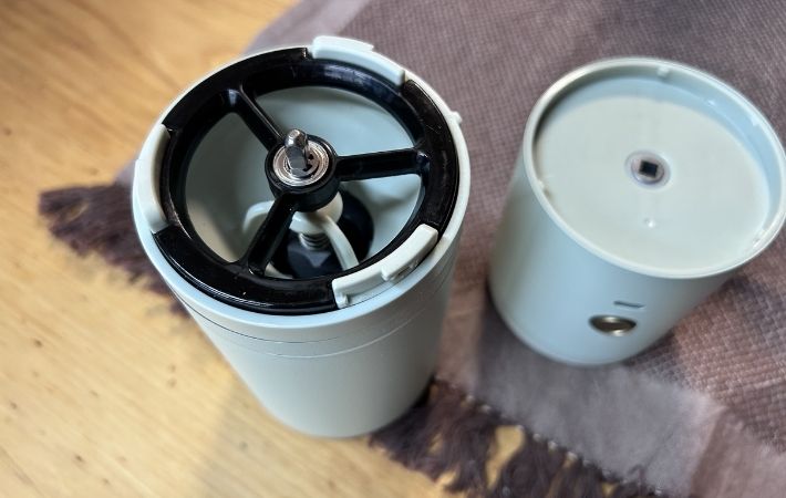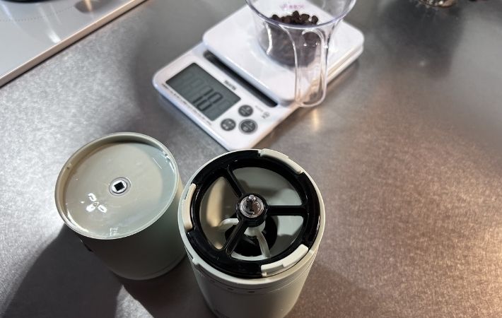 使い方は簡単です。10〜15gほどのコーヒー豆をセットして、モーター部分をセット。