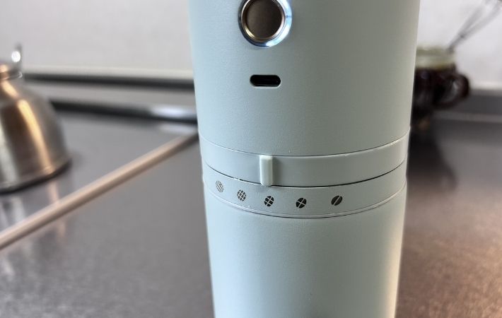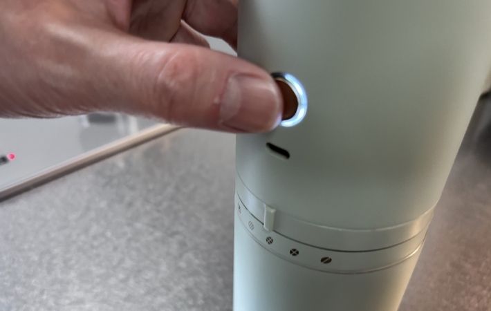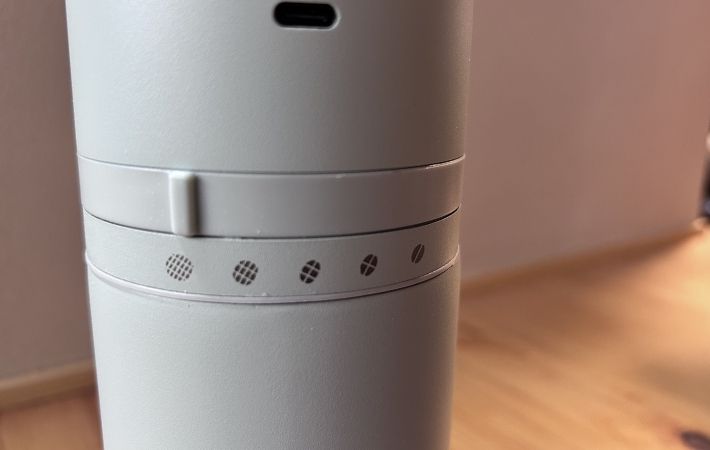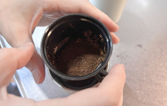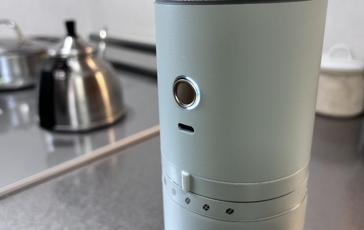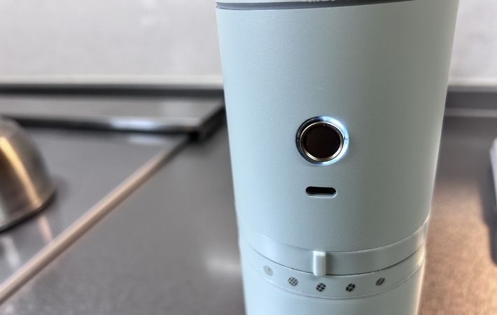 『挽き目調整リング』を好みの位置に合わせて、スイッチを2秒長押しすると、豆挽きがスタートします。