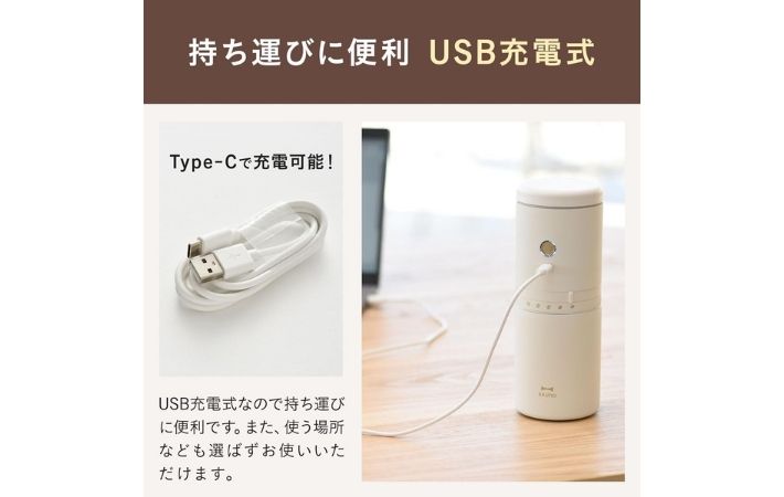 USB充電式なので、事前に充電しておけばキャンプ場や公園のベンチなど、電源がない場所でも使えるのもポイントです。