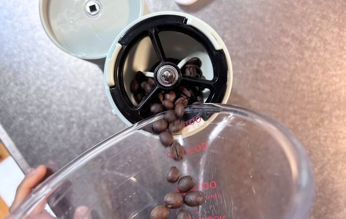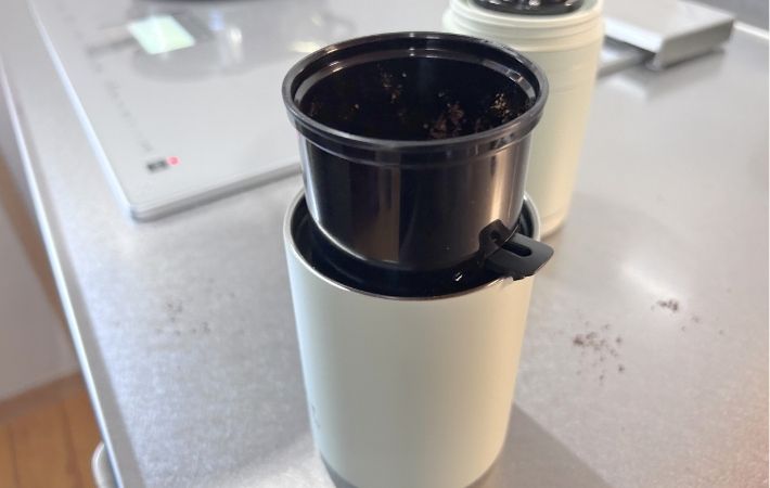 電動なので力もいらず、忙しい朝の時間でも『ながら作業』で豆が挽けるのは非常に便利です。