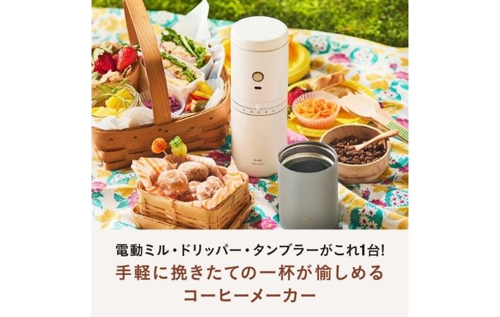 電動ミル、ドリッパー、真空タンブラーが一体になった、まさに『持ち運べるコーヒーショップ』のようなアイデア商品。