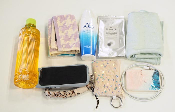 ・日焼け止め、汗拭きシート