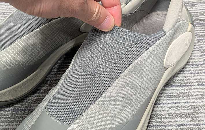 まれにアッパーのニット部分が曲がることはありましたが、おおむね手を使わずに履くことができました。