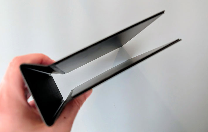 このスタンドもスチール製のマットな質感と、挟むだけのシンプルな形状のアイテムです。